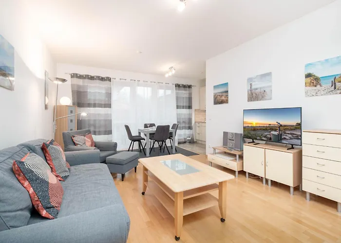 Nabízející Wi-Fi ve veřejných prostorách, Apartmán Domizil Wohldkamp App 3 Timmendorfer Strand je asi 10 minut chůze od Waldkirche. Součástí areálu je i terasa.
